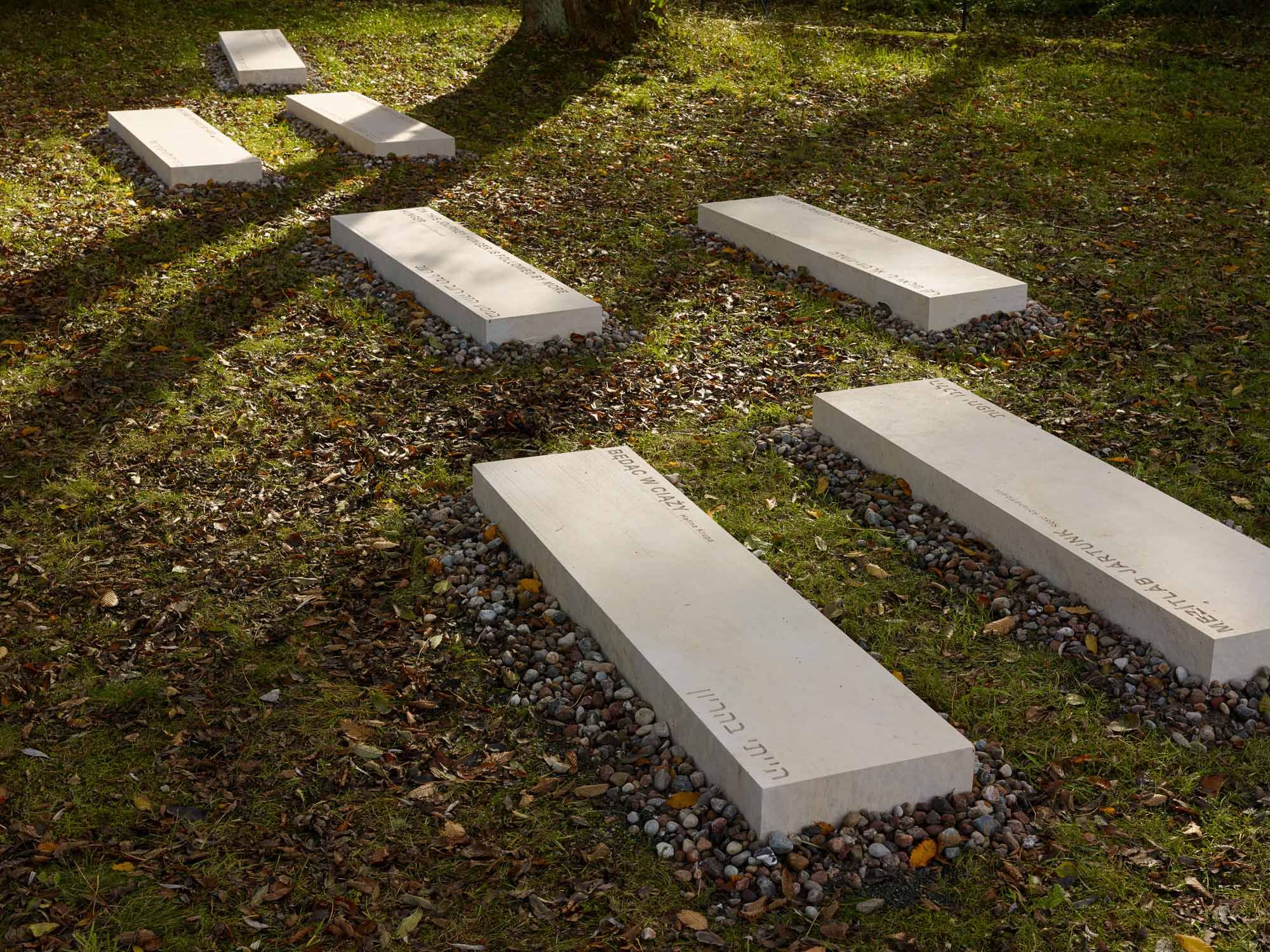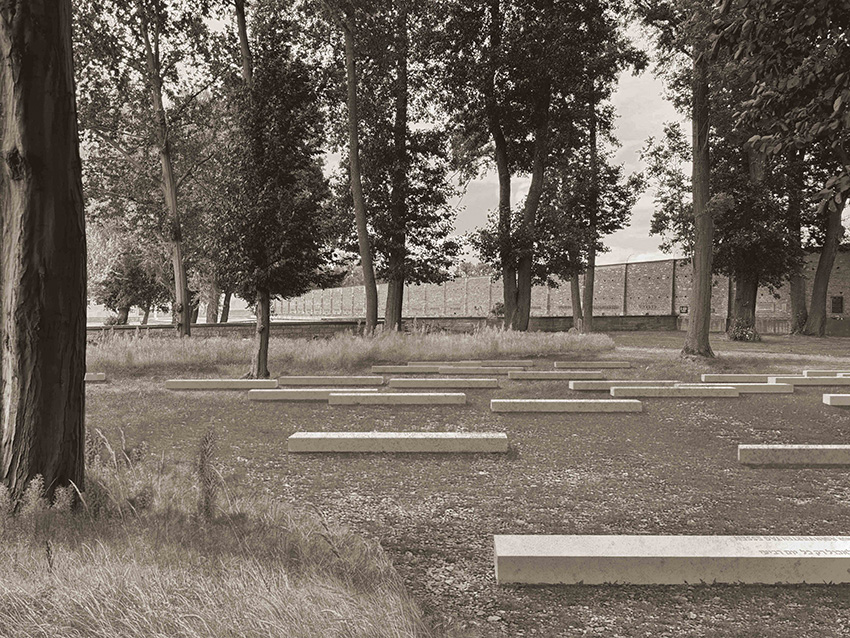 Ein Stein bleibt unbeschriftet. Er ist als Leerstelle und Lücke vieldeutig zu verstehen. Er verweist auf die große Zahl der hier nicht namentlich Genannten ebenso wie auf die vielen abgebrochenen, unvollendeten und zerstörten Biographien. Es ist eine Leerstelle, die ausdrückt, dass Verlust nicht nur im Gesagten, sondern auch im Unfassbaren zu suchen ist – dort, wo jede Darstellung versagt.