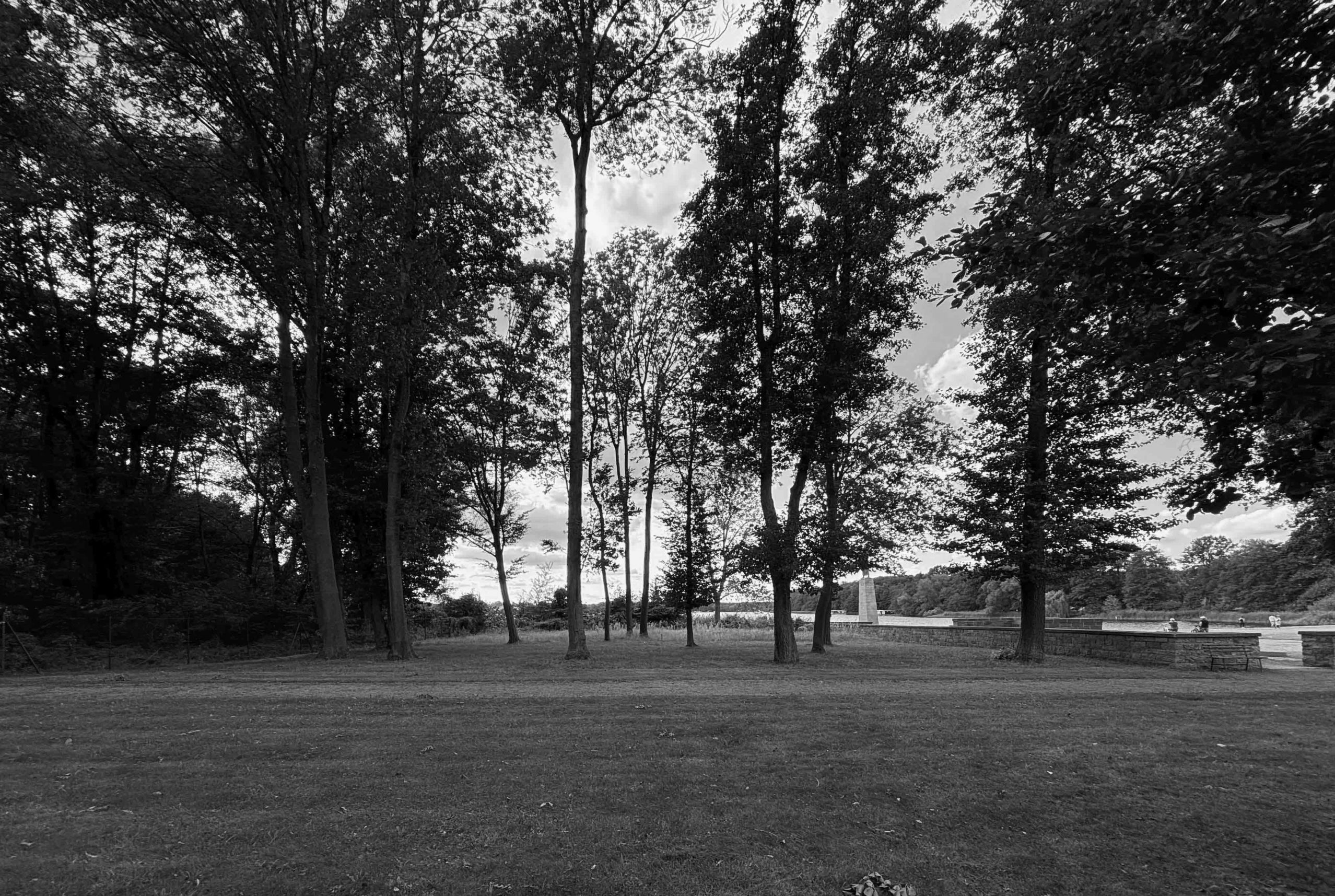 Das Gedenkzeichen für die jüdischen Häftlinge des Frauen-Konzentrationslagers Ravensbrück befindet sich auf einer mit Bäumen bestandenen Wiese zwischen dem Ufer des Schwedtsees und der ehemaligen Lagermauer. Die idyllische Situation des gerahmten Hains mit Blick über den See auf das Städtchen Fürstenberg steht in schmerzhaftem Kontrast zu der Gewalt, die sich diesem Ort unauslöschlich eingeschrieben hat.